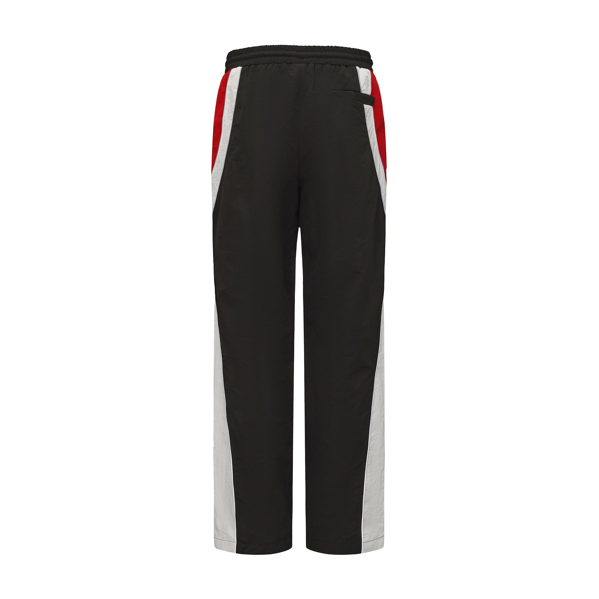 The bold black base is sculpted with white side panels and racing red accents for a dynamic, motorsport-inspired edge. An elastic waistband with adjustable drawcord ensures a secure, tailored fit, while clean vertical paneling elongates the profile for a refined finish.